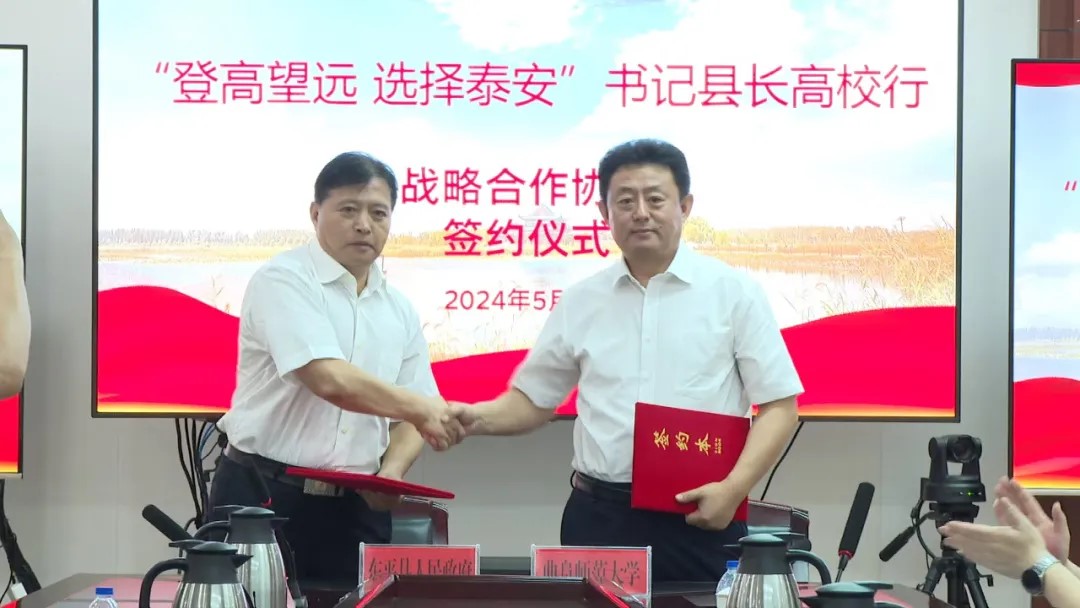 学校科技处处长杨月伟、社科处处长朱莉雅,省派四进工作队驻东平县工作支队队员、曲阜师大基础教育课程研究中心教授王焕霞以及东平县湖管委、组织部、教体局、科技局、人社局、旅游局等职能部门负责人,参加了签约仪式。仪式后,双方就校地融合发展等问题开展了座谈,纪洪涛一行还到现代农业高科技示范园、大运河非物质文化遗产传习中心等地进行了实地调研。