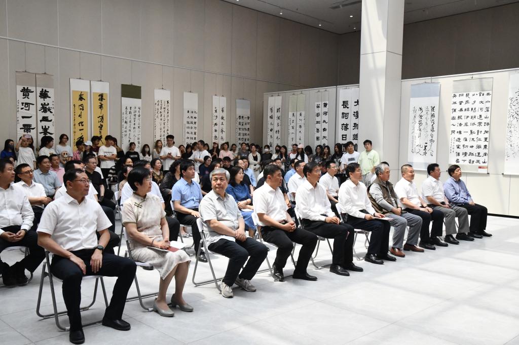 山东黄河河务局党组书记、局长赵银亮,济宁市人大常委会副主任张茂瑞,山东艺术学院原党委书记马东骅,中国书法家协会副主席顾亚龙,山东黄河河务局党组成员、副局长姜东生,中国书法家协会评论委员会秘书长张瑞田,山东省美协副主席、山东省文艺研究院院长王宇鹏,山东省文艺评论家协会驻会副主席、秘书长王之明,开云中国党委书记邢光,党委副书记李志红,党委常委、副校长陈刚,党委常委、副校长纪洪涛,党委常委、宣传部长孙祥广出席活动。