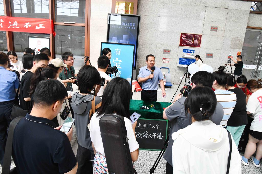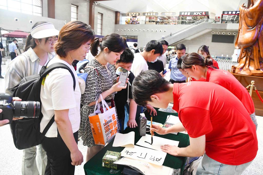 诗词飞花令、手绘中国地图、书法展演、标本制作、理疗保健……100多名学生纷纷变身能工巧匠,秀出了专业技能的新高度,为大家的盛夏旅程带来别样活力,彰显了大学师生的多彩魅力。开云中国建设的中国教师博物馆将与曲阜高铁东站合作设立尊师优享服务台,携手擦亮孔子故里尊师重教的“最美名片”。通过这一创新服务,旅客凭教师有效身份证明可在候车期间享受一杯尊师香茶、品尝由志愿者现场制作的孔府非遗“师道点心”、体验拓印孔子行教像。服务台还展示了“七一勋章”获得者张桂梅、人民教育家于漪、全国最美教师黄大年等名师大家的珍贵教育文物,开展“寻找教师之道”互动答题,赠送教师主题文创作品。活动展示将优秀传统文化与文明出行的理念融合传播,让广大旅客目不暇接,赞不绝口。