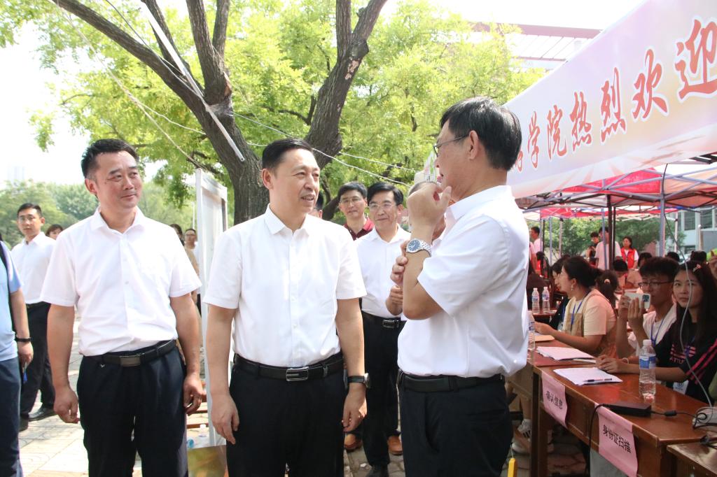 曲阜师大开云手机登录界面讯 8月31日,学校领导邢光、张洪海、李志红、李兆祥、胡凡刚、刘刚、纪洪涛,深入现场检查指导迎新工作,看望慰问2024级新生及家长。