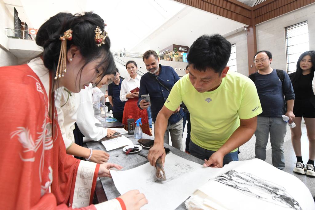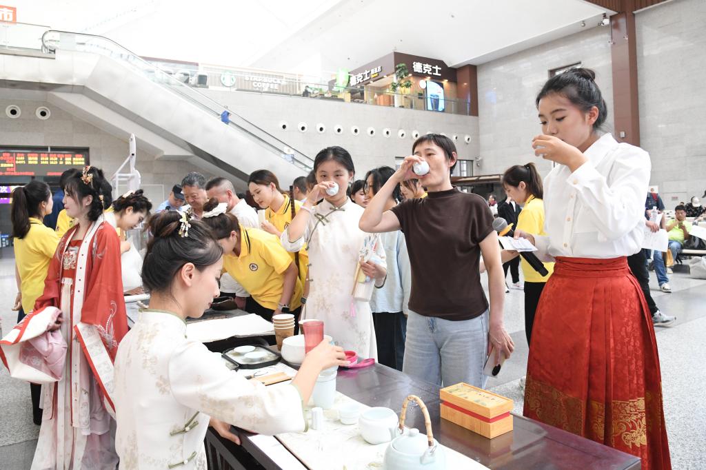 “通过国风元素传递文化自信和民族自豪感,是我们为国弘文的一种追求。”中国教师博物馆大学生宣讲团呈现了华美的汉服走秀、雅致的茶道表演,为大家设计了具有独特象征意义的孔子画像拓印体验,从多个维度传递出中华优秀传统文化魅力。书法学院同学现场手绘精美团扇赠送乘客,为高铁旅途增添一份丹青翰墨之美。“汉服、书法这些美丽的载体蕴含着我们民族的文化和历史传承。”曲阜师大美术与书法学院刘博文同学说,身边的“小伙伴们”希望通过富有青春特色的打开方式,让更多的人更好地认识国风、国粹。