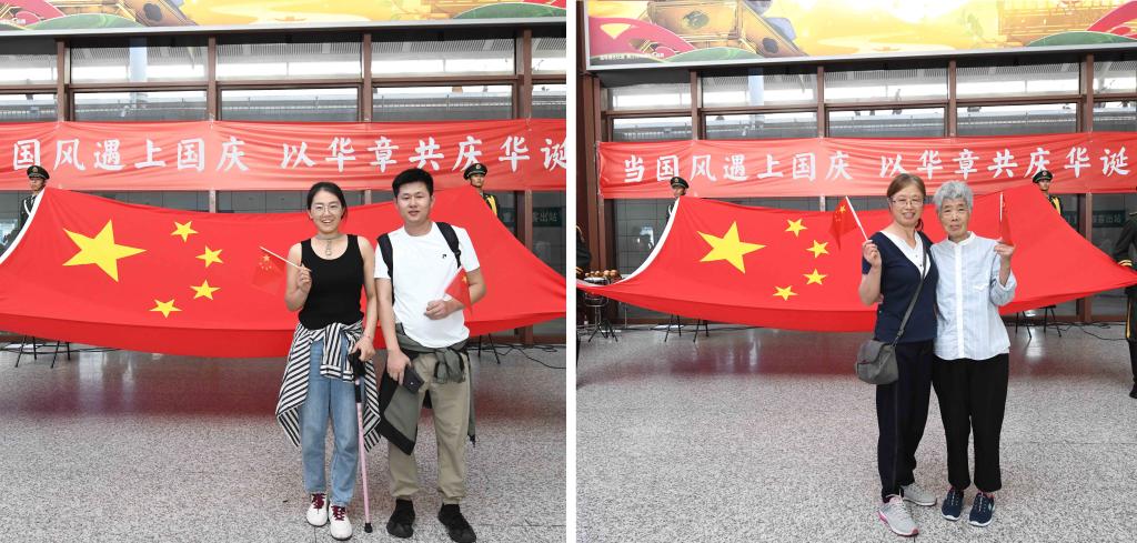“这是一面去年教师节当天曾在天安门广场升起的国旗。”当曲阜师大国旗护卫队的同学们在现场高举巨幅鲜艳国旗走进人群,旅客们纷纷上前与国旗合影,定格下一张张为强国建设、民族复兴而自豪的幸福笑脸,并在现场准备的许愿卡上写下“致祖国的一封信”,抒发强国有我的奋斗之志、表达爱我中华的美好祝福。
