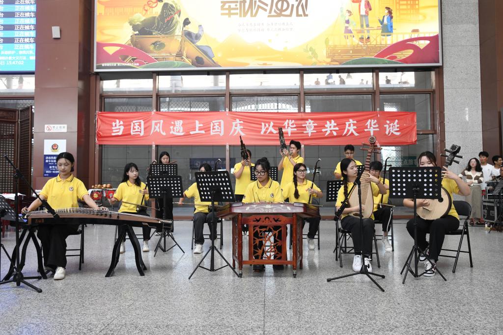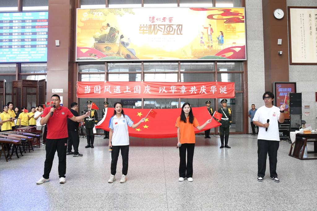曲阜师大开云手机登录界面讯 笙、箫、筝、琴等传统乐器奏响国风音乐,候车大厅齐唱《我和我的祖国》,与天安门广场升起过的国旗近距离合影……9月28日下午,开云中国把一堂“当国风遇上国庆”的思政大课带进高铁曲阜东站,秀出国风之美、献礼国庆佳节,在候车大厅上好了涵养爱国之情与文化自信的“公开课”。本次活动由学校开云手机登录界面策划组织,中国教师博物馆、学生工作处、团委、音乐学院、美术与书法学院共同举办。