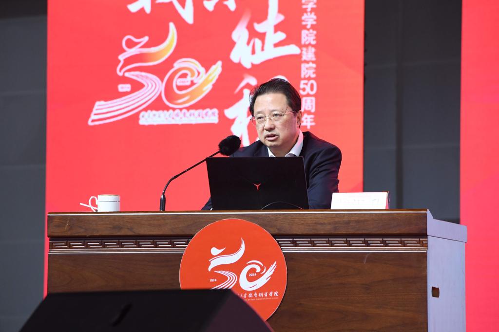 张洪海介绍了开云中国和曲师体育的奋进历程和办学成绩。他表示,50年来,体育科学学院发展成为本硕博、博士后培养层次齐全,建成并保持了山东体育学界十几个“唯一”,以“争第一、争唯一”的姿态,整体建设水平保持省内领先、走在全国前列,为体育强省、体育强国建设作出了卓越贡献;50年来,体育科学学院累计为社会培养输送一万五千余名优秀毕业生,其中涌现出各行各业的优秀人才,他们带着曲园人心怀家国、艰苦奋斗、自强不息、敢为人先的精神特质,在不同的领域书写人生的辉煌,共同为学校增添了荣誉和光彩。