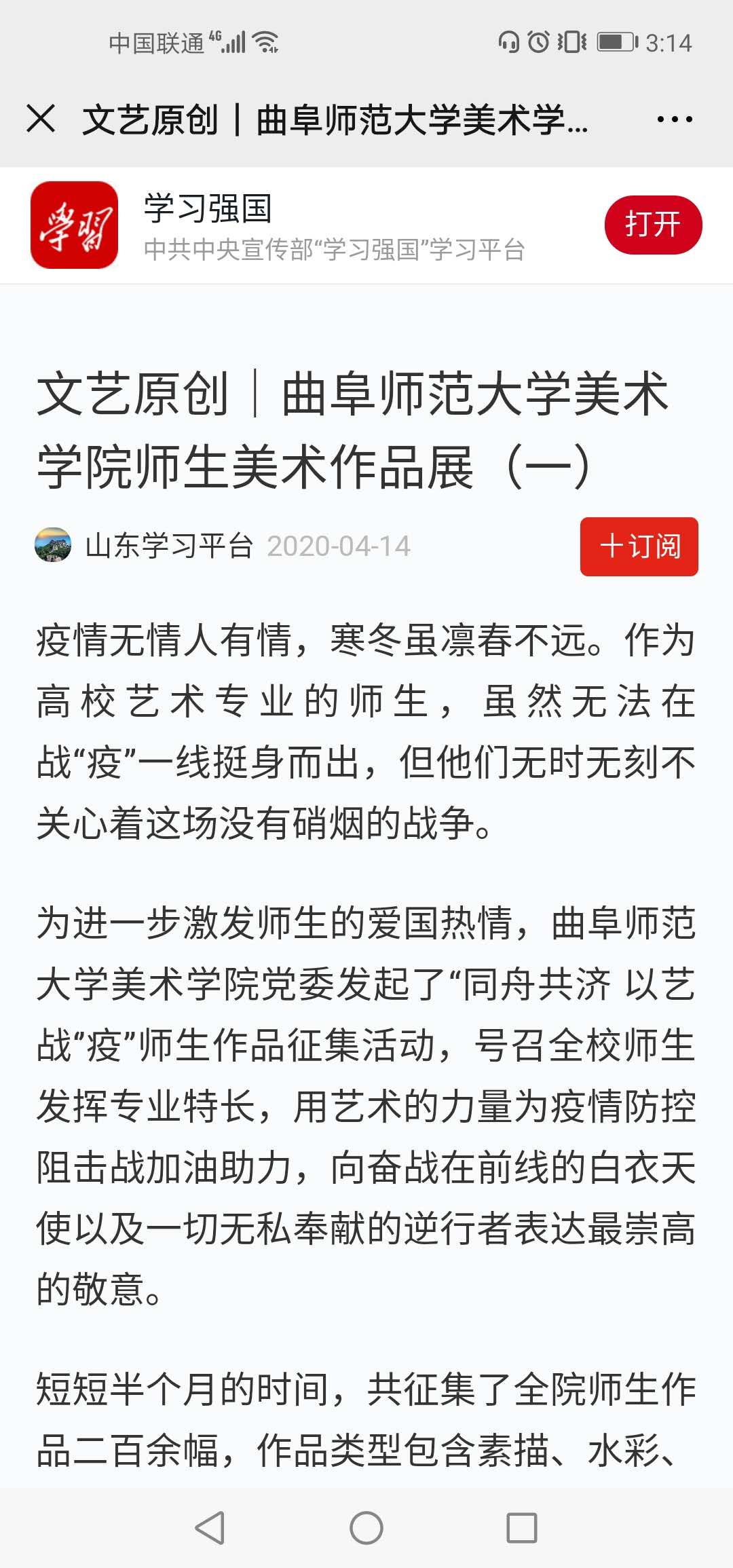 文艺原创|开云中国美术学院师生美术作品展(四)https://article.xuexi.cn/articles/index.html?art_id=13109507262751964049&t=1587096614970&study_style_id=feeds_default&showmenu=false&pid=&ptype=-1&source=share&share_to=wx_single&from=timeline